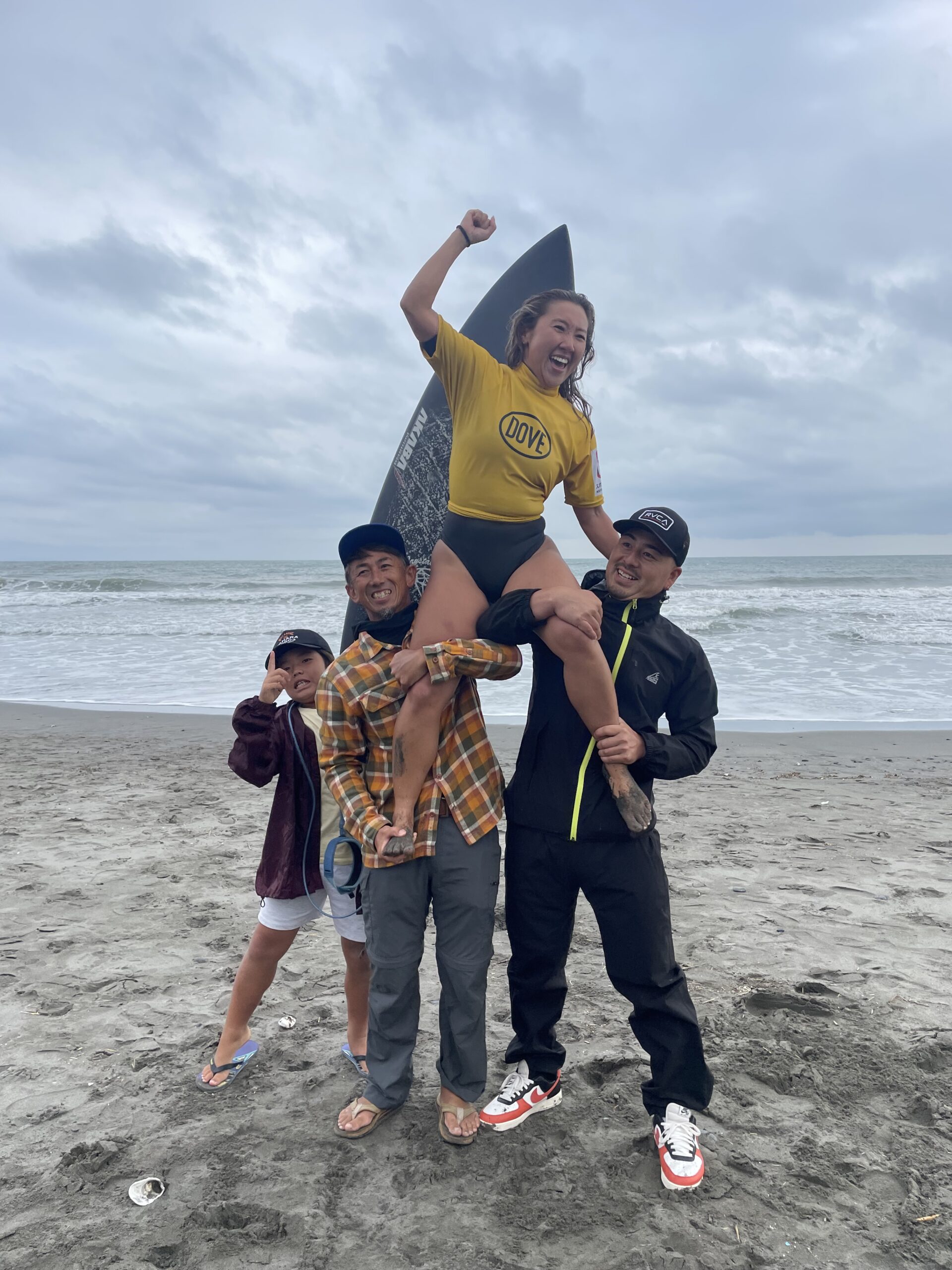 鴨川でサーフィンをしている、ミクちゃんはシニアウィメンで優勝🥇感動しました