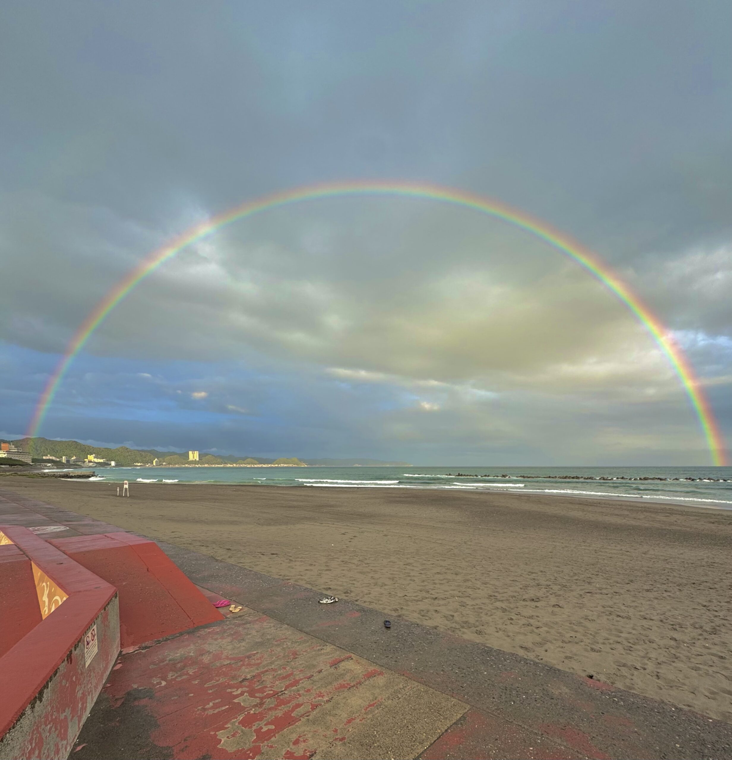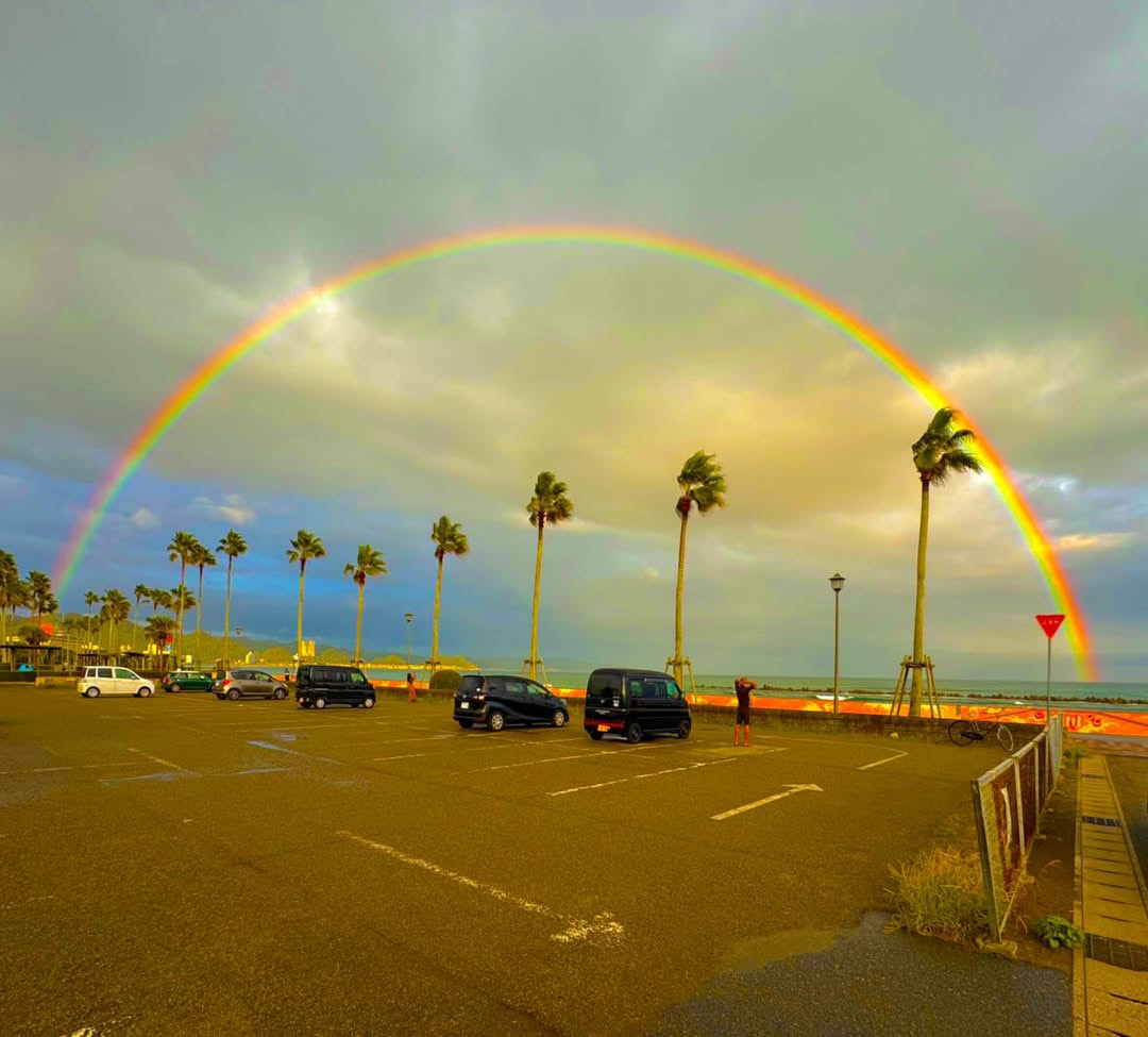 写真は AMレッスン受けられたOさん のを拝借。急に出た完璧な虹に、大興奮して皆んなでビーチへ駆け出しました。ほんとにすごかったー🌈✨
